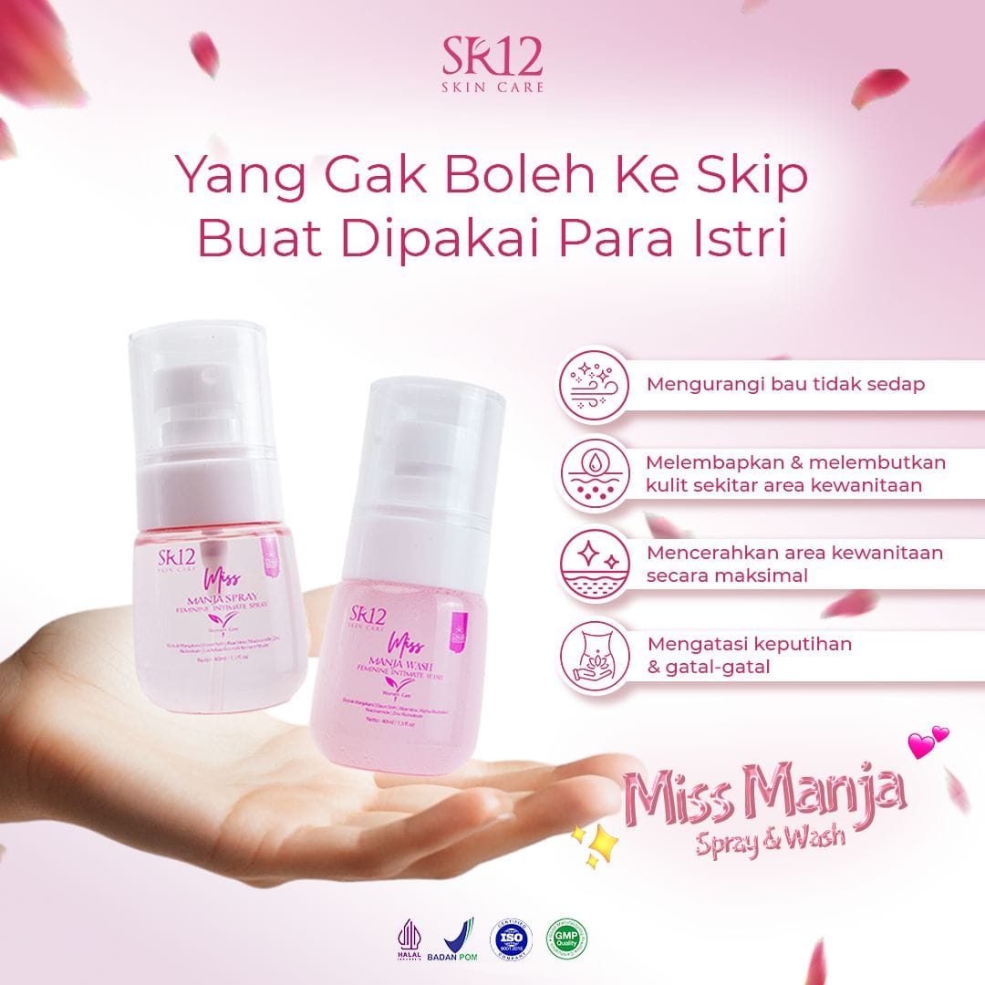 • SR12 Miss Manja Spray → inovasi feminine spray praktis tanpa bilas, cocok untuk on-the-go.