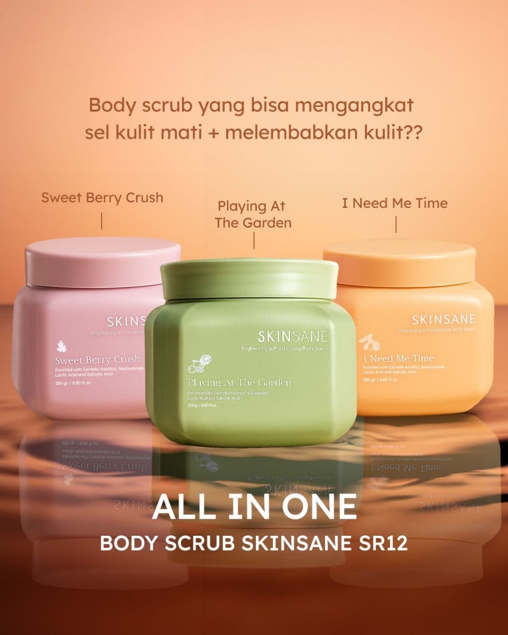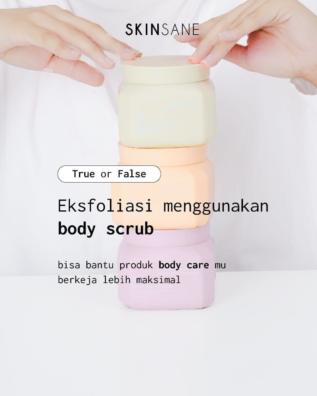 Pesan sekarang SKINSANE Brightening & Moisturizing Body Scrub dan nikmati sensasi mandi ala spa di rumah setiap hari! 🌸
